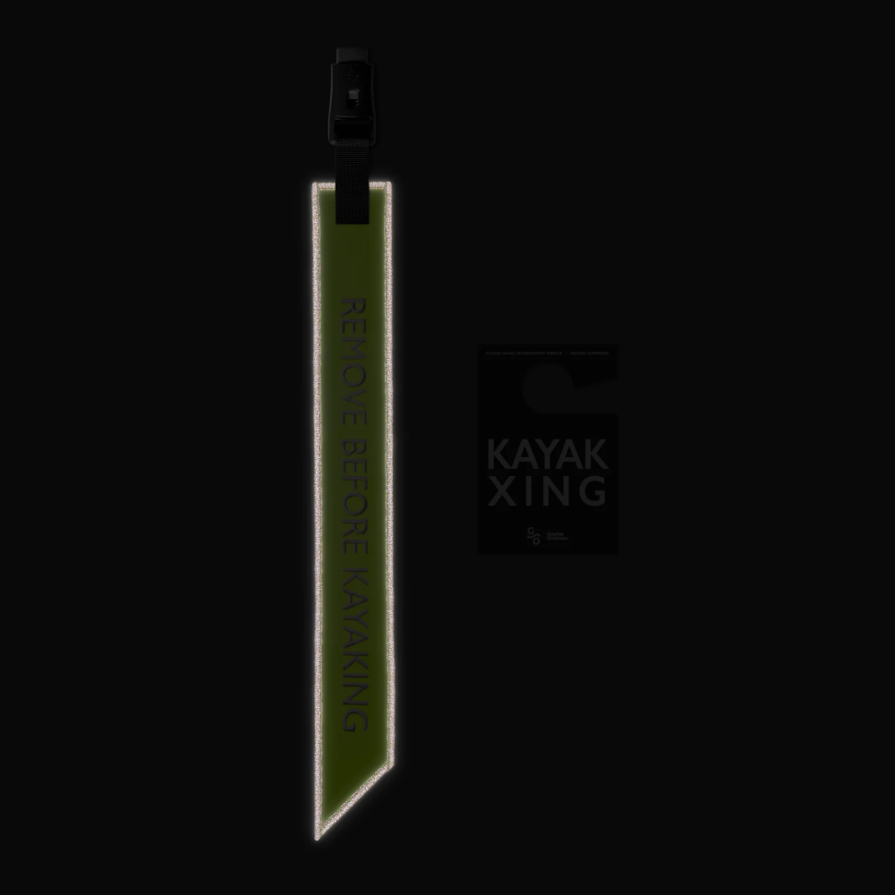 Drapeau de sécurité pour kayak Gearlab avec attache Deckhand et bordures réfléchissantes. S'attache facilement aux lignes de pont des kayaks lorsque la visibilité est nécessaire.