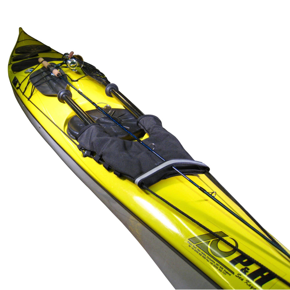 Housse permettant de ranger facilement et sécuritairement votre pagaie de secours sur votre pont de kayak tout en gardant un accès facile à cette dernière en cas de besoin lorsque vous êtes assis dans votre kayak. Design profilé offrant peu d'emprise au vent et aux vagues. S'attache fermement aux lignes de vie pour un bon maintient dans le surf.