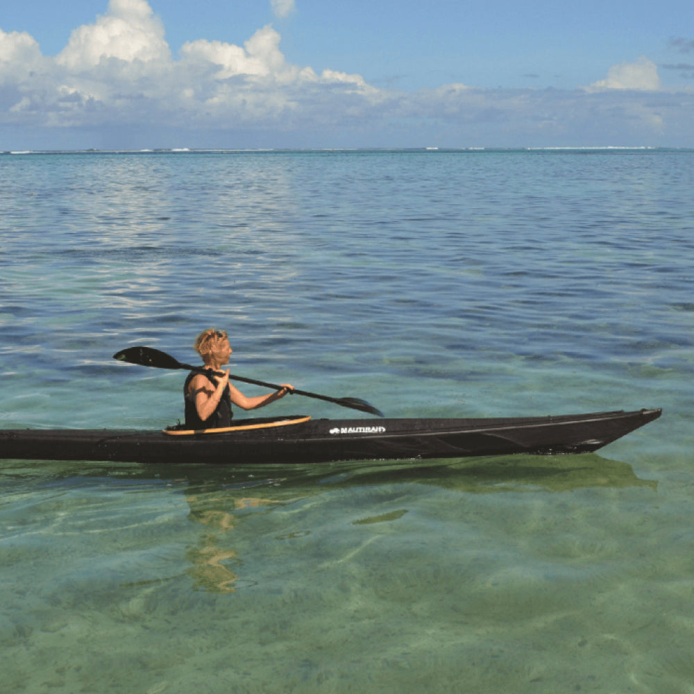 Nous avons soigné particulièrement l’ergonomie avec un siège à cale hanches gonflable, un cale-genoux et un cale-pieds plateforme pour faire corps avec son bateau.