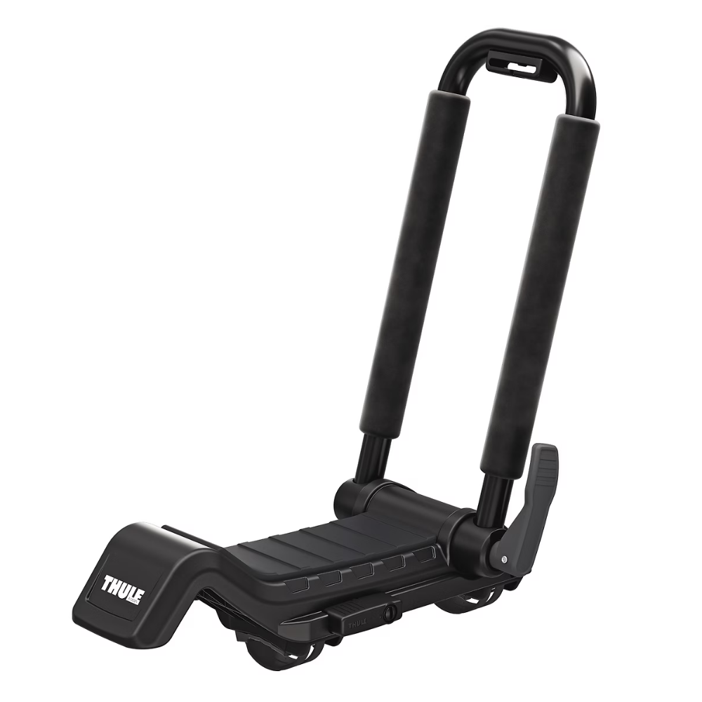 - Transportez jusqu’à deux kayaks grâce à la conception à double position qui permet de passer d’un berceau de style J à un empileur pour deux kayaks