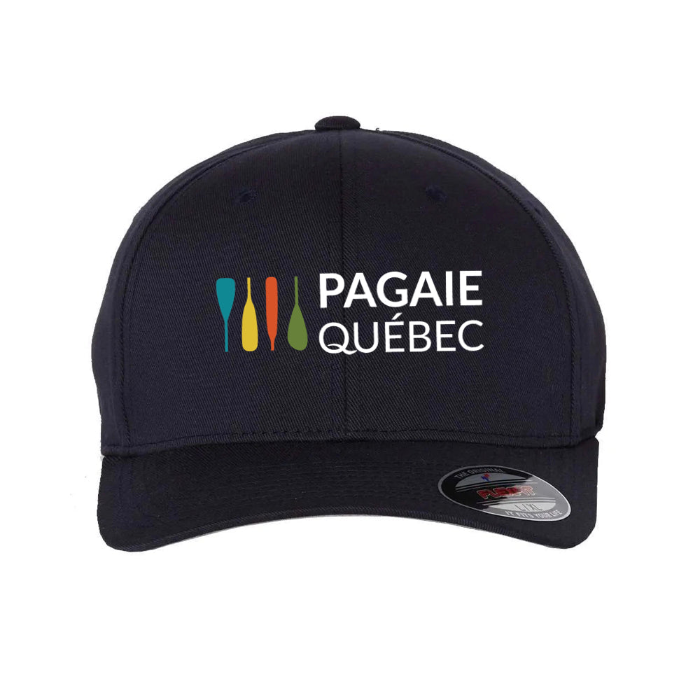 Disponible en quantité limitée, Casquette Flexfit ajustable noire avec le logo de Pagaie Québec.