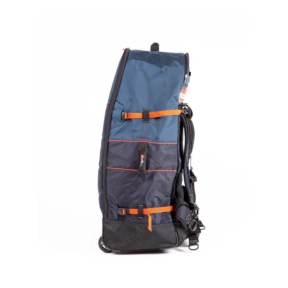 Red Paddle a complètement repensé son sac-à-dos tout terrain la saison dernière afin de proposer un système de transport sans sac. Ce système reposant sur la structure du sac signifie que vous pouvez accéder à plus de voies navigables sans devoir avoir recours à un sac encombrant pour simplement emmener les sangles et votre pompe. Lorsque vous utilisez le sac, les roues tout terrain permettent un transport facile sur les terrains accidentés et le design adapté à la morphologie s’ajuste entièrement à votre taille pour protéger votre corps au maximum quand vous soulevez une charge lourde. Les grandes poches extérieures permettent d’accéder rapidement aux objets essentiels et la poche intérieure avec velcro permet d’y ranger la pale de votre pagaie en sécurité. Le matériau interne arbore un élégant motif Red répété et sa résistance à l’eau minimise toute humidité intrusive. L'intérieur comprend des espaces supplémentaires pour ranger de petits objets et conserver votre kit de réparation à portée de main.