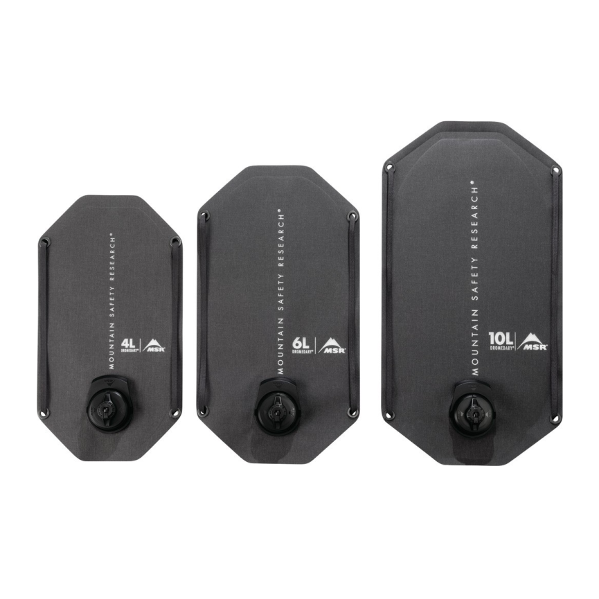 Entièrement compressibles pour assurer un encombrement minimal, nos systèmes de stockage et de distribution d'eau de moyenne à grande capacité sont adaptés à toutes utilisations, que vous partiez en expédition lourde ou en style alpin. Les réservoirs sont protégés par un tissu 1000 deniers incroyablement résistant et disposent maintenant d’un revêtement intérieur amélioré, de qualité alimentaire, sans BPA, pour une eau qui garde bon goût. Ils peuvent supporter le gel aussi bien que les mauvais traitements infligés par les co-équipiers en expédition et les aventuriers exigeants. Ils sont polyvalents avec des accessoires comme le kit douche ou le kit d’hydratation. Le nouveau bouchon mince « 3 en 1 » vous permet de remplir les réservoirs, de boire et de verser avec une grande facilité.